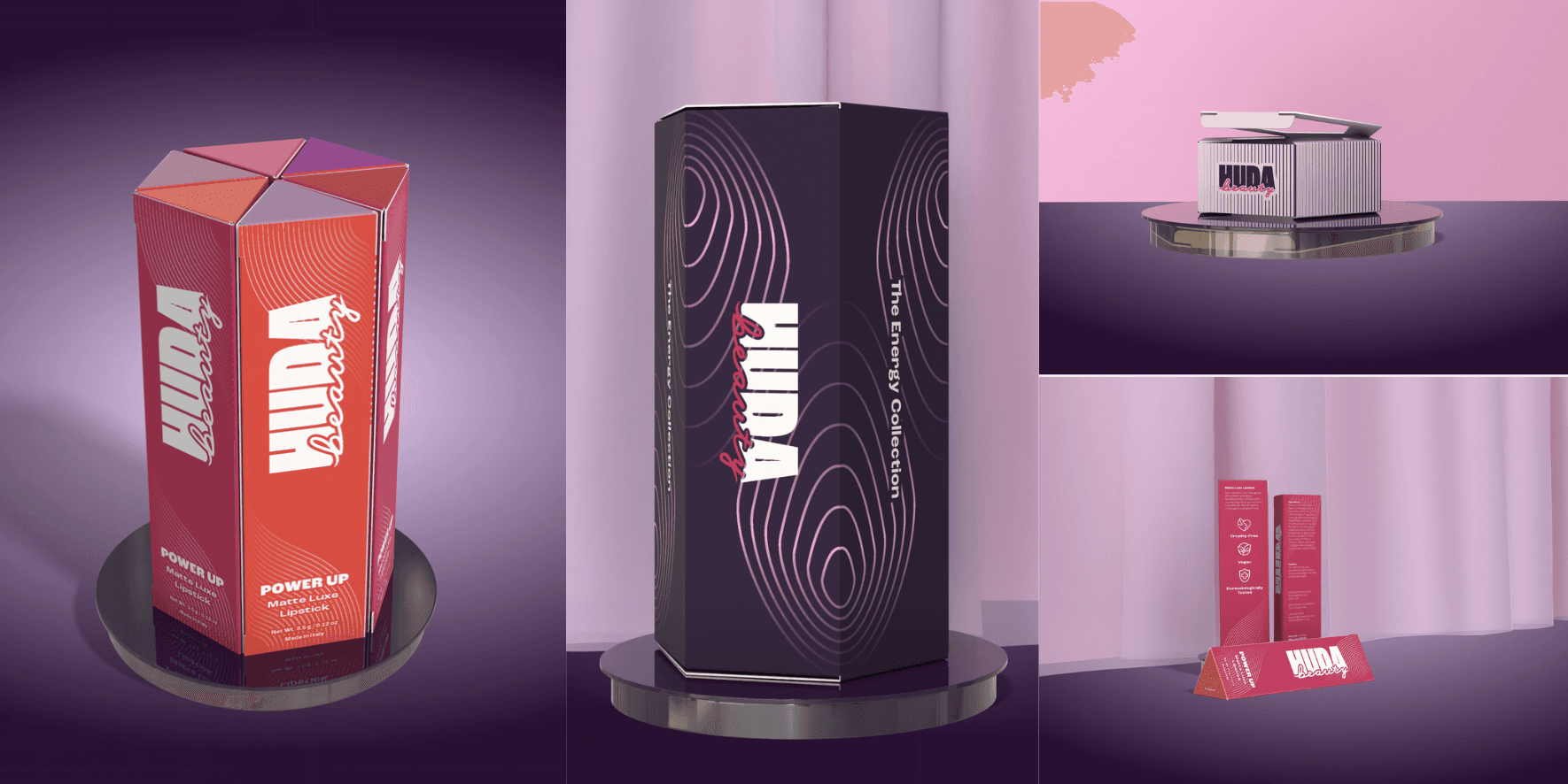 A bold, human, influencer-led visual identity that embraces the glam, drama, and unapologetic confidence she represents. The system amplifies Huda’s real personality — expressive typography, striking visuals, and a confident, “no-safe-choices” attitude that restores what the new rebrand muted.